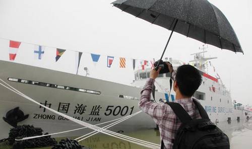A photographer takes pictures of the patrol ship China Maritime Surveillance 5001 at Zhongshan Harbor in Nanjing, Jiangsu province, on May 9, 2013. [Photo by Qi Ta/Asianewsphoto]