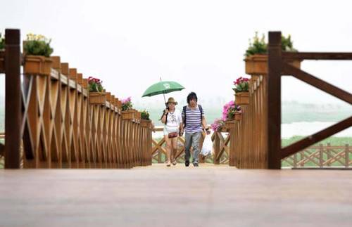 Visitors at Qilihai National Wetland Park in Tianjin on June 8, 2013. [Photo/Xinhua]