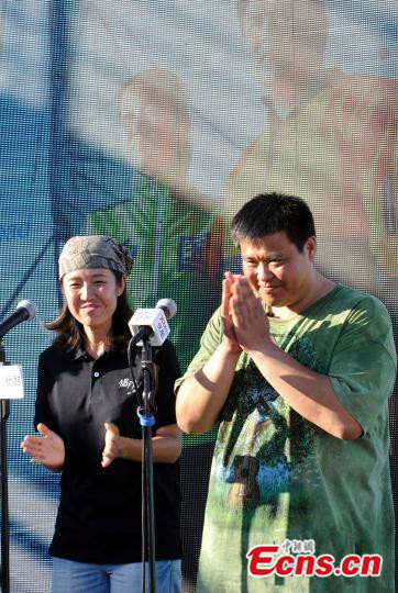 Liang Hong and Zhang Xinyu, a young couple who plans to sail around the world and hold their wedding at the Antarctic, meet the press at Los Angeles in the United States on October 6, 2013 after three-month sailing. 34-year-old Liang Hong and her 36-year-old boyfriend Zhang Xinyu are both Beijing-born and the pair of passionate globetrotters began their tour this July in Hong Kong. [Photo: China News Service / Mao Jianjun]