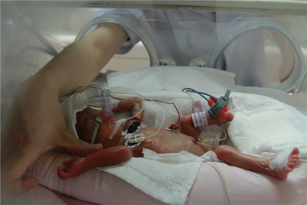 Nurses take care of a tiny baby girl in the intensive care unit (ICU) of Xiangya Hospital in Changsha, Hunan province, Oct 30, 2013. [Photo by Zhou Qiang/Asianewsphoto]