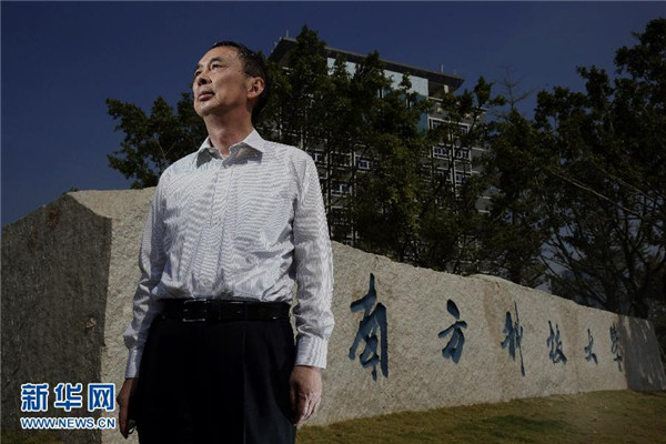 Zhu Qingshi stands outside the gate of South University of Science and Technology of China on Nov. 1, 2013. In April 2012, the South University of Science and Technology of China (SUSTC) was established in Shenzhen, Guangdong Province. As China's first self-governed university, the school is considered a pioneering project in China's higher education reform. [Xinhua Photo]