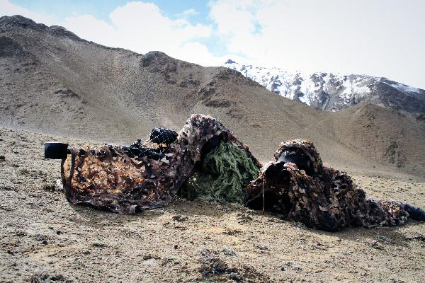 A sniper and an observer are in camouflage. A special operation brigade under the Xinjiang Military Area Command (MAC) of the Chinese People's Liberation Army (PLA) conducted training in a field training range located in the hinterland of the Gobi desert in late April. (Chinamil.com.cn/Zhou Wenchao)