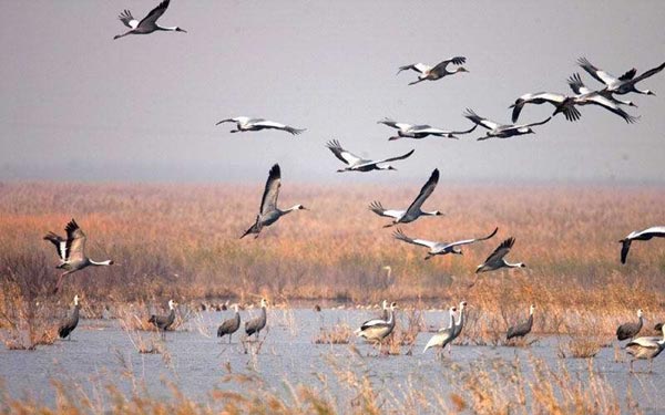 The Yellow River Delta Wetland area is famous for its beautiful sunsets on the Yellow River. (Photo/China.org.cn)