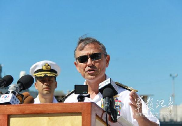 Adm. Harry B. Harris, commander of the United States Pacific Fleet, hosts a press conference in Hawaii on June 30, 2014, local time. The United States Navy held an opening ceremony for the "Rim of the Pacific 2014" (RIMPAC) exercise, which was followed by a press conference in Hawaii, the United States, on Monday morning, marking the beginning of the RIMPAC exercise. (JZ. 81. cn/Wu Min)
