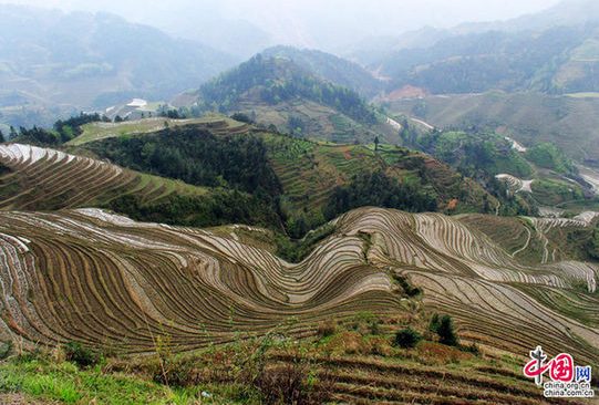 Located on Longji Mountain of Ping'an Village, Longji Terrace, also known as Longsheng Terrace Field, is a fascinating scenic spot. First constructed in the Yuan Dynasty and completed in the Qing Dynasty, it has over 650 years of history. It gets its name for resembling a dragon with the mountain top as its backbone. Covering an area of 66 square kilometers, it climbs in altitude from 300 to 1,100 meters. June is considered the best time to visit.