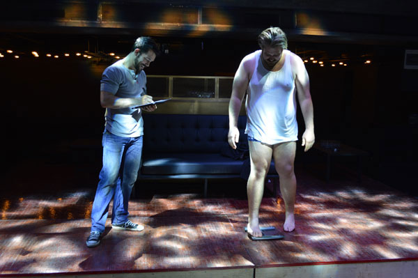 Coach Sean Wright (left) records a fighter's weight two days prior to the white collar boxing held in Beijing last Friday, as fighters need to be closely matched according to weight. [Photo by Jiang Wanjuan/chinadaily.com.cn]