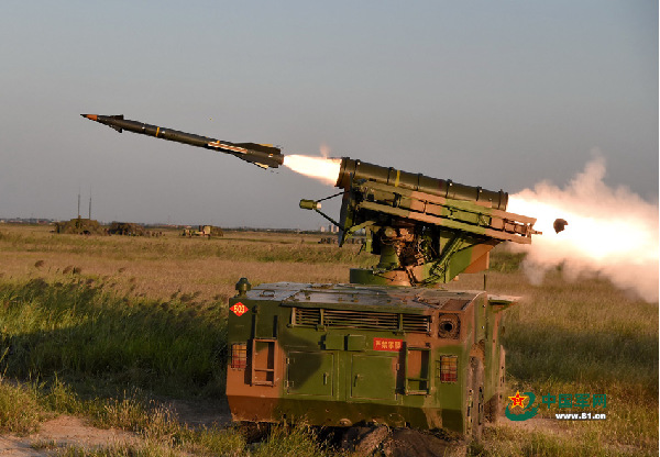 The participating air defense brigade under the 13th Group Army of the Chinese People's Liberation Army (PLA) organized its anti-aircraft gun and missile units to launch air defense missiles to attack the "enemy" targets in the air. The trans-Military Area Command (MAC) "Firepower-2014•Weibei" military exercise entered live-ammunition tactical drill phase on September 10, 2014. (Chinamil/com/cn/Liu Fengan)