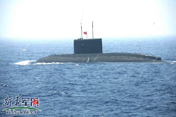 The submarine is sailing on the sea surface. The submarine (hull number: 372), a new-type of conventional submarine commissioned to the South China Sea Fleet of the Chinese People's Liberation Army Navy (PLAN), berths at a naval base located at the Yalong Bay in Sanya city, south China's Hainan province. (Chinamil.com.cn/Wan Juncheng)