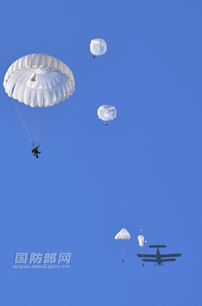 The paratroopers are in parachuting training. An airborne division of the Air Force of the Chinese People's Liberation Army (PLAAF) organized thousands of recruits to conduct large scale parachuting training in cold winter for the first time on December 17, 2014. According to sources, the new paratroopers will conduct the parachuting training on such complicated subjects as night parachuting and armed parachuting immediately afterwards. (mod.gov.cn/Jiang Long)