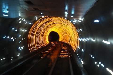 Sightseeing tunnel of the Bund station in Shanghai is like a tunnel in time. (Photo/Beijing News)
