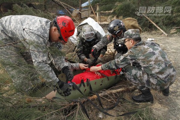 The US-China Joint Humanitarian Assistance and Disaster Relief Exercise entered the actual troop drilling phase in Haikou city, south China's Hainan province, on January 18, 2015.
