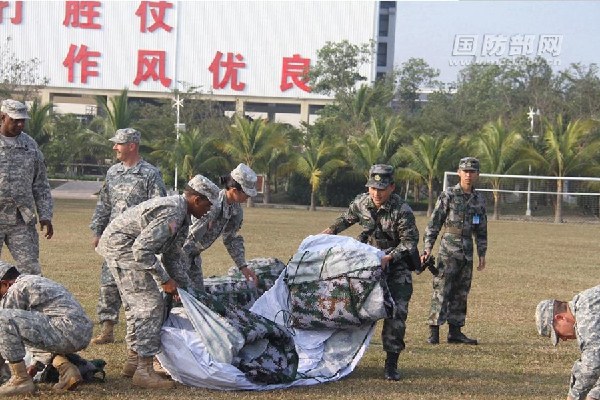 The US-China Joint Humanitarian Assistance and Disaster Relief Exercise entered the actual troop drilling phase in Haikou city, south China's Hainan province, on January 18, 2015.