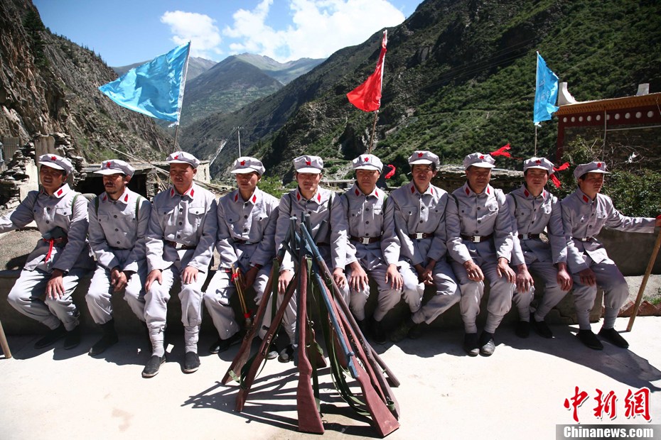 Tibetan from Jiajin village, located at the foot of Mt. Jiajin- the first snow-covered mountain the Red Army ever climbed over during the Long March, are singing and dancing to celebrate the 90th anniversary of the founding of Chinese Communist Party. [Photo/ CNSphoto]