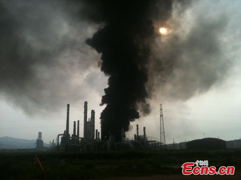 Huizhou Oil Refinery of China National Offshore Oil Corp. in south China’s Guangdong Province caught a fire at 4 a.m. on July 11, 2011. Over 80 fire engine trucks were operated at the scene of the incident. [CNS Photo/ Song Xiujie]