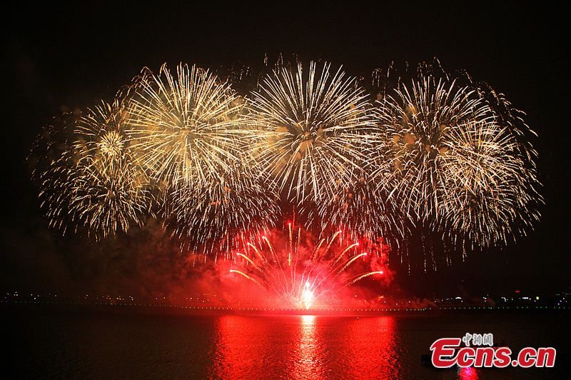 Musical firework displays lit up Juzizhou on the evening of July 9, 2011, in Changsha, south China’s Hunan Province. [CNS Photo/ Yang Huafeng]