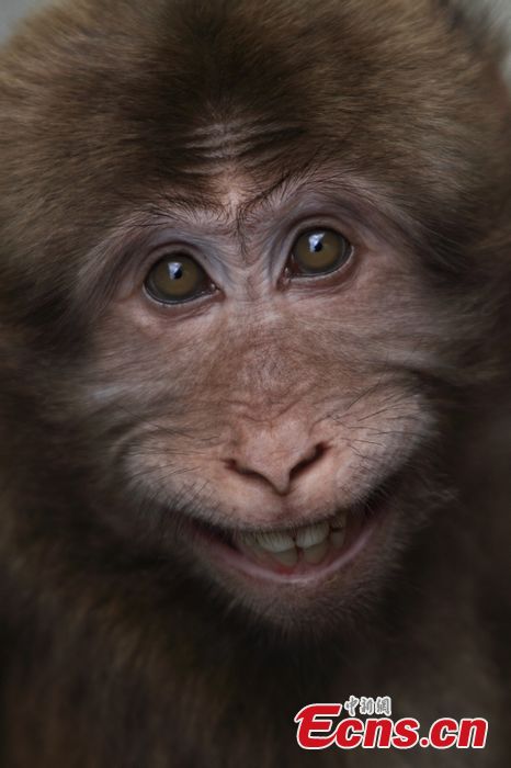 A smiling stump-tailed macaque at the Wild Monkey Valley in Huangshan City, east China's Anhui Province. [CNS Photo/ Hu Hongkun]