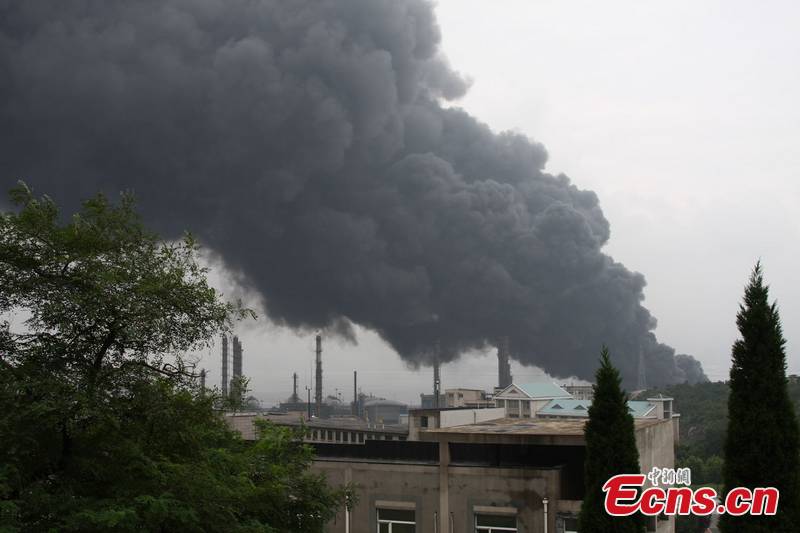 An explosion in a storage tank triggers an intense fire at China National Petroleum Corporation's Dalian branch in northeast China's Liaoning Province, August 29, 2011. [CNS Photo/Wang Xiaoyu]