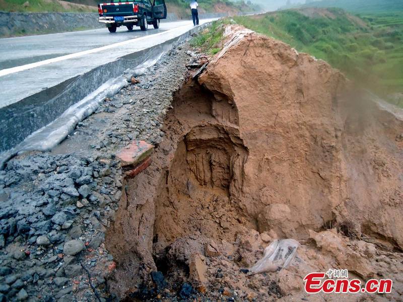 A downpour soaked Ningde City due to the tropical storm "Nanmaldo", August 31. The Jiaocheng section of Ninggu highway is damaged by landslides. No casualties have been reported. [Wang Xiongquan]