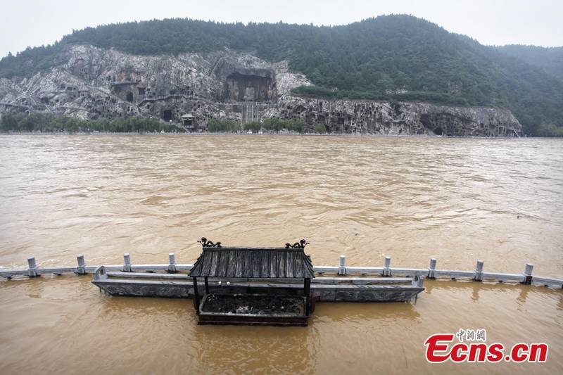 Waters from the swelling Yi River flood the Buddha-worshiping stand at the Longmen Grottoes, a world cultural heritage, near Luoyang City, central China's Henan Province, September 15, 2011. Authorities are forced to close the site to public Wednesday. Buddha carvings and other cultural relics have not been damaged. [CNS Photo/Zhang Xiaoli]