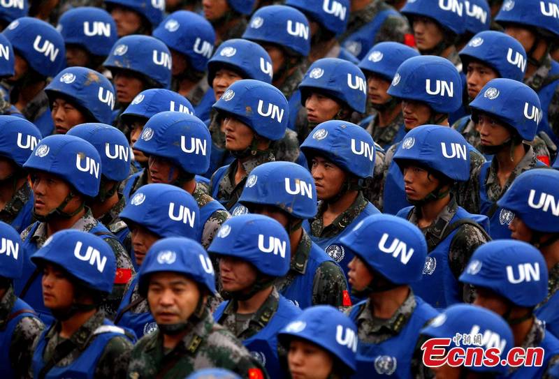 Blue-helmet Action 2011, the first real-ammunition exercises in China's peacekeeping history, is conducted by the Jinan Military Command of the Chinese People's Liberation Army (PLA). [CNS Photo/Song Jihe]