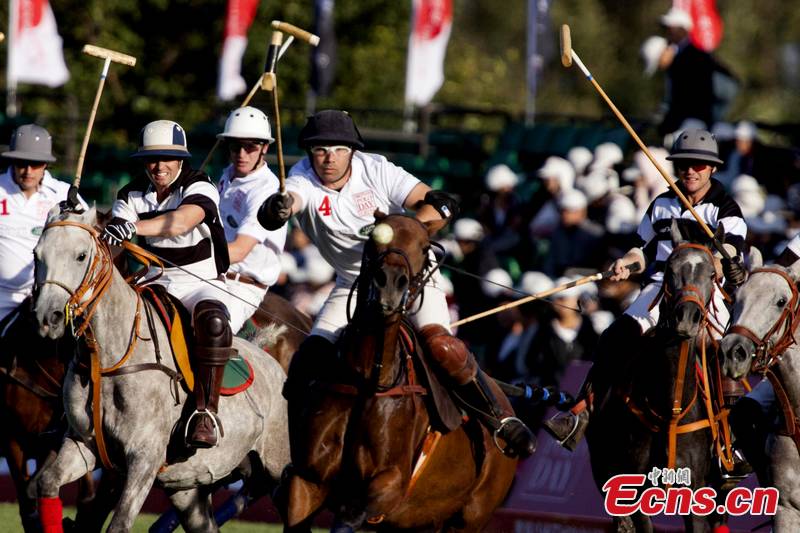 Players compete at the 2011 Beijing International Polo Open. This is the third time the event is held and this year it has become an official part of the World Polo Tournaments. The four-day event closed on September 17, with the champion cup going to British Exiles. [CNS Photo/Fu Tian]