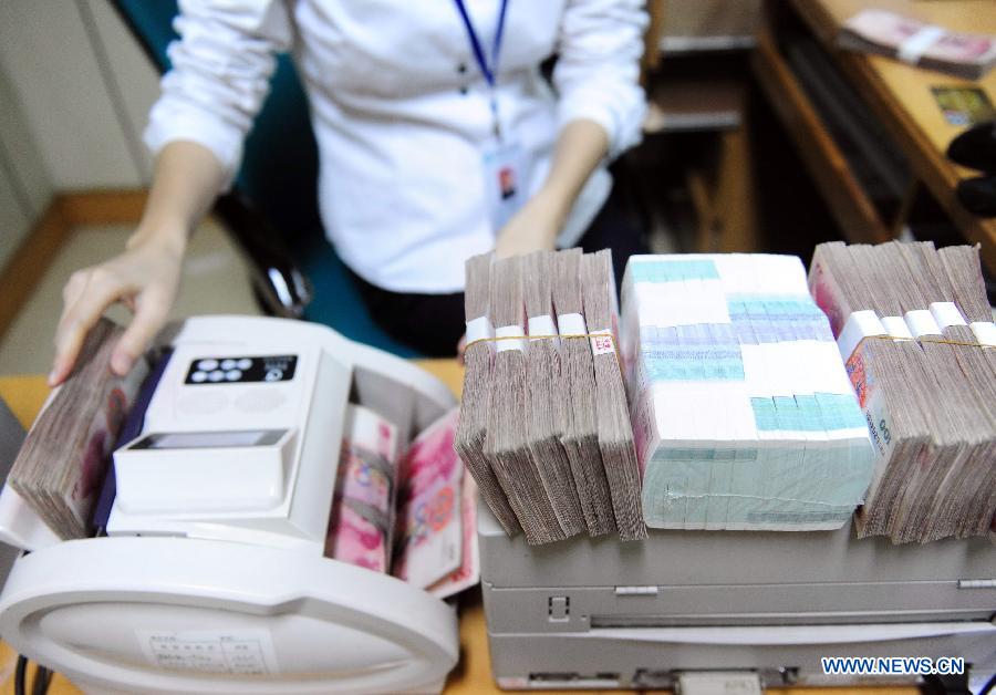 A bank staff counts clients' cash deposits in Qionghai, south China's Hainan Province, Dec. 5, 2011. The People's Bank of China, the country's central bank, on Monday cut banks' reserve requirement ratio (RRR) by 0.5 percentage points, for the first time in 35 months, an act taken to replenish liquidity in China's banking system as inflation eases. (Xinhua/Meng Zhongde)