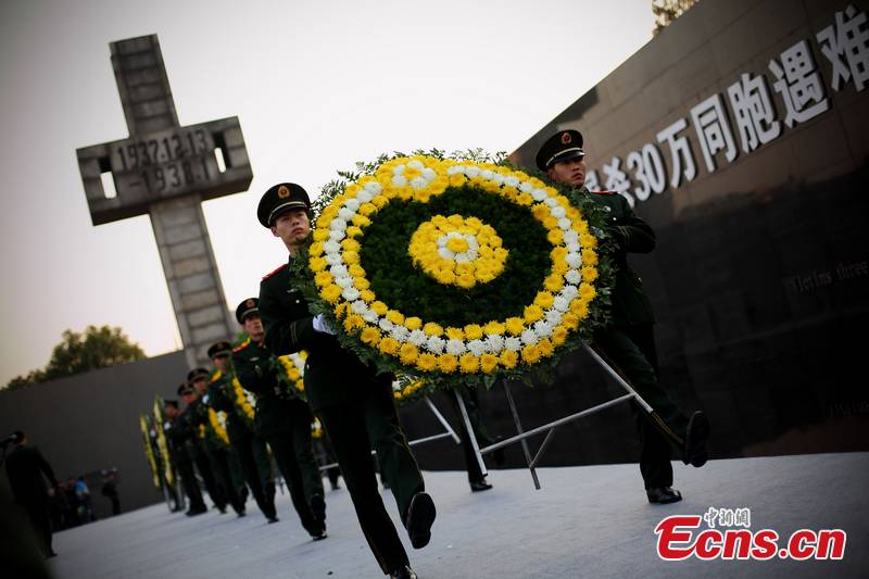 Armed police conduct a rehearsal for commemorative activities of the 74th anniversary of the Nanjing Massacre in the capital of eastern China's Jiangsu Province, December 12, 2011. The Nanjing Massacre lasted six weeks when Japanese militarists occupied the city on December 13, 1937, during the War of Resistance Against Japanese Aggression (1937-1945). [CNS Photo/Yang Bo]