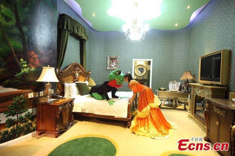 A hotel room named after the Frog Prince shows customers a fairytale world, in northeastern China's Jilin City, December 23, 2011. The largest fairy-tale themed hotel over the country welcomes the first batch of guests from Russia on its soft opening day. [CNS Photo/Cang Yan]
