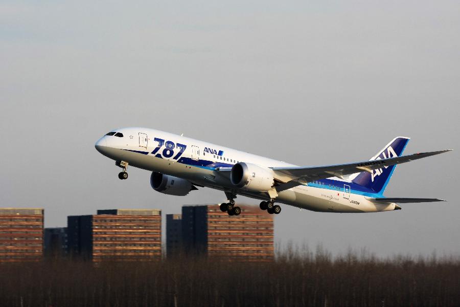 All Nippon Airways' Boeing 787 Dreamliner aircraft takes off for returning to Tokyo at Beijing International Airport in Beijing, capital of China, Jan. 14, 2012. This is the first Boeing 787 Dreamliner aircraft operated commercially arriving at the airport. (Xinhua/Fu Qi)