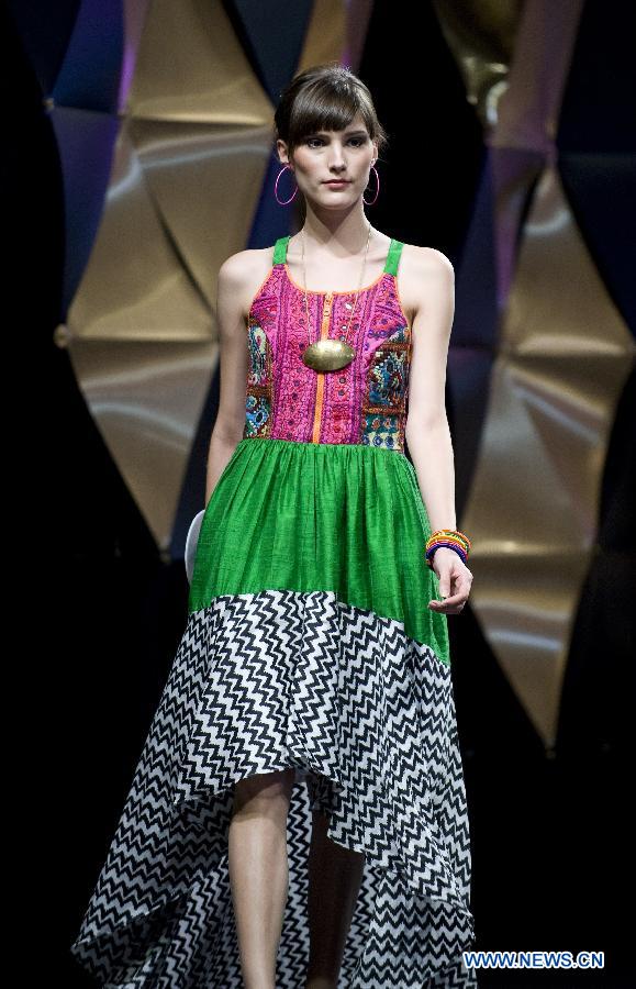 A model presents fashion creations by Indian designers during the Hong Kong Fashion Week for Fall/Winter 2012 in Hong Kong, south China, Jan. 17, 2012. (Xinhua/Lui Siu Wai)