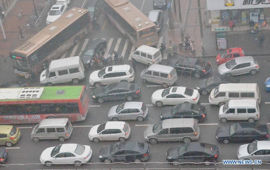 Heavy fog causes long time traffic jam in C China's city(1/3)