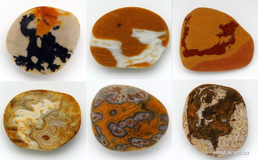 Photo taken on Jan. 20, 2012 shows six Yuhua pebbles with dragon pattern in Nanjing, capital of east China's Jiangsu Province. Zheng Zheng, a stone collector from Nanjing, presented over 120 Yuhua pebbles with the pattern of dragon to mark the upcoming Chinese lunar Year of Dragon. (Xinhua/Han Yuqing)