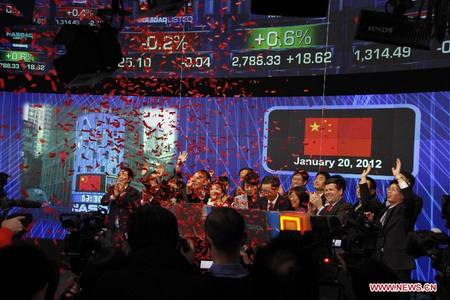 A bell-ring ceremony is held in the Nasdaq Exchange to mark the Chinese New Year, the Year of Dragon, in New York, the United States on Jan. 20, 2012. (Xinhua/Wang Chengyun)