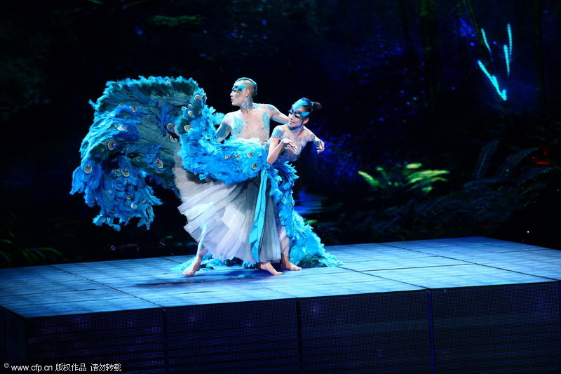 Celebrated dancers Yang Liping and Wang Di play "Peacocks in Love."