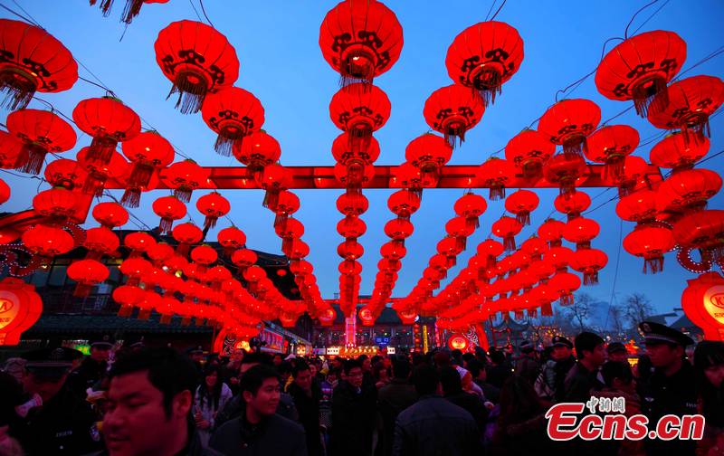 As the Lantern Festival arrives, tourists enjoy a sea of lights at the Confucius Temple in Nanjing, capital of east China's Jiangsu Province, February 5, 2012. [CNS Photo/Yang Bo]