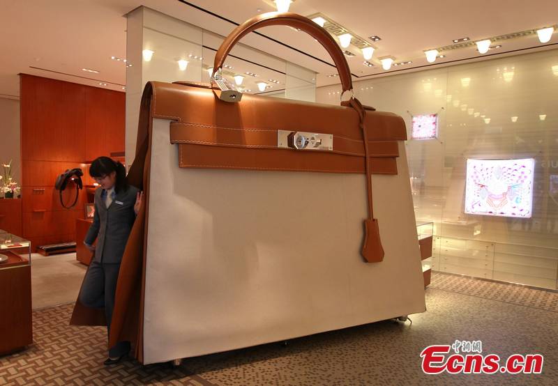 A giant handbag, standing at 3 meters, appears at the Deji Plaza in Nanjing, capital of east China's Jiangsu Province, February 21, 2012. Customers can experience a rocking chair and enjoy visual works inside. [CNS Photo/Yang Bo]