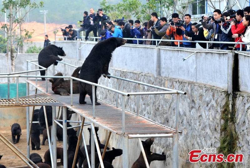 Guizhentang, a Chinese medicines maker that sells tonics made with bear bile, opens its farm to the public, February 22, 2012. [CNS Photo/Wang Dongming]