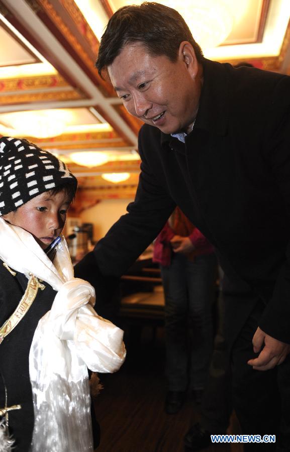 A child with congenital heart disease is seen in Lhasa, capital of southwest China's Tibet Autonomous Region, March 14, 2012, before leaving for Beijing, capital of China, to receive free medical treatment. A total of 10 children, aged between 3 and 11, were diagnosed with congenital heart disease in Tibet's Shannan prefecture when Beijing's medical specialists conducted medical mission there. These children will go to Beijing by train to receive free surgery as beneficiaries of a charity program. (Xinhua/Purbu Zhaxi)