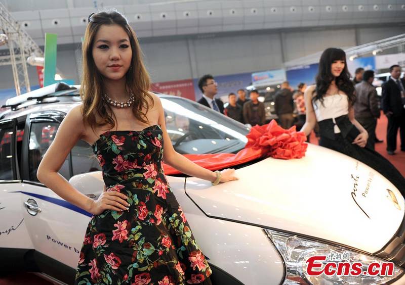 Models present a vehicle during an auto show in Urumqi, capital of northwest China's Xinjiang Uygur Autonomous Region, March 15, 2012. [CNS Photo/Liu Xin]