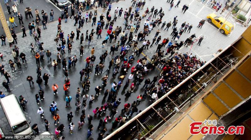 Hundreds of football fans queue for tickets to Hengda vs. Fuli game of Chinese super league in Guangzhou, capital of south China’s Guangdong Province, March 15, 2012. A friction nearly occurred for the Hengda fans were refused for purchasing tickets. [CFP Photo]