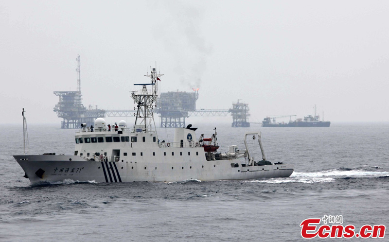 A China Marine Surveillance (CMS) patrol team, including the Haijian 83 and Haijian 75 patrol ships from the South Sea fleet of the China Maritime Surveillance Force in Guangzhou, Guangdong Province, recently finishes its third mission targeted at the illegal exploration of oil and gas in the South China Sea, the South China Sea branch of the State Oceanic Administration said on Tuesday. More than 30 illegal platforms have been discovered in total. [Photo: CNS]