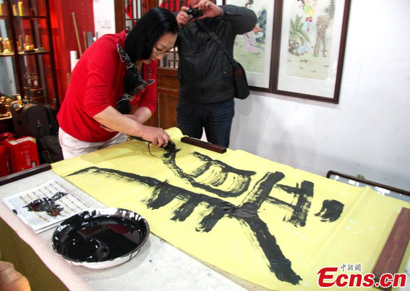 Chinese woman practices calligraphy with 1.68-meter hair (1/2)