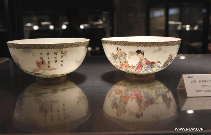 Delicate chinawares displayed before auction in Beijing (1/4)