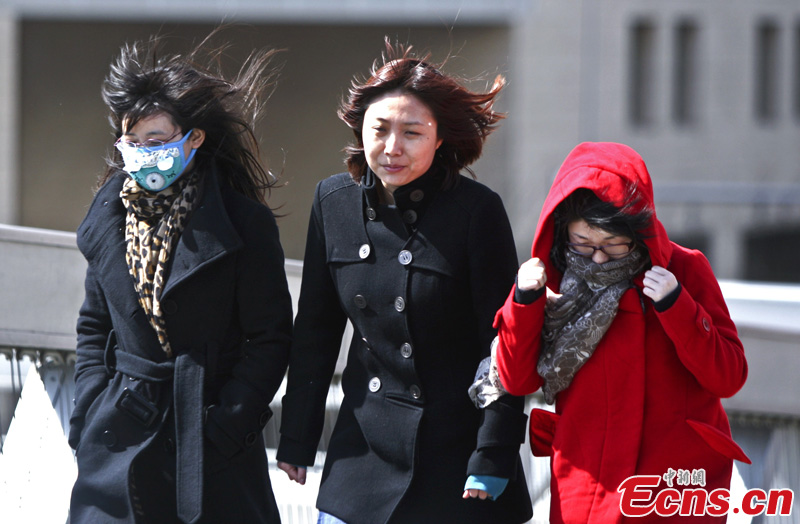 A fierce wind sweeps through Beijing today. The Beijing Meteorological Bureau has issued a blue alarm against strong winds with speed up to a maximum 8-grade by the midnight. [Photo: CNS/Zhang Hao]
