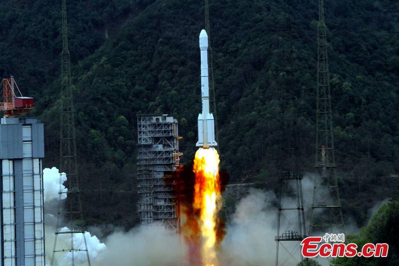 China successfully sends a French-made communication satellite "APSTAR-VII" into orbit with a Long March-3B carrier rocket, at Xichang Satellite Launch Center in southwest China's Sichuan Province, March 31, 2012. [CNS Photo: Sun Zifa]