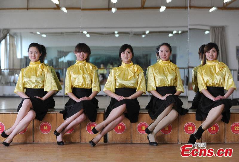Five undergraduates from Wuhan Textile University in central China's Hubei Province take a course to learn how to be "lady-like". [CFP Photo]