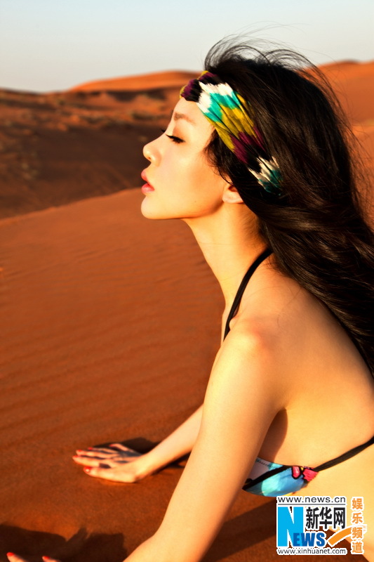 Gong Xinliang shows off figure in Dubai desert (1/5)