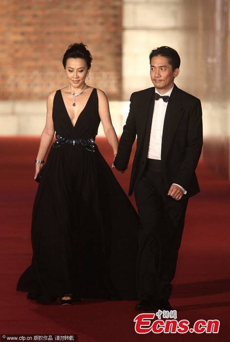 Tony Leung Chiu Wai and Carina Lau Kar-ling walk the red carpet at 31th Hong Kong Film Awards, April 15, 2012. [CFP Photo]
