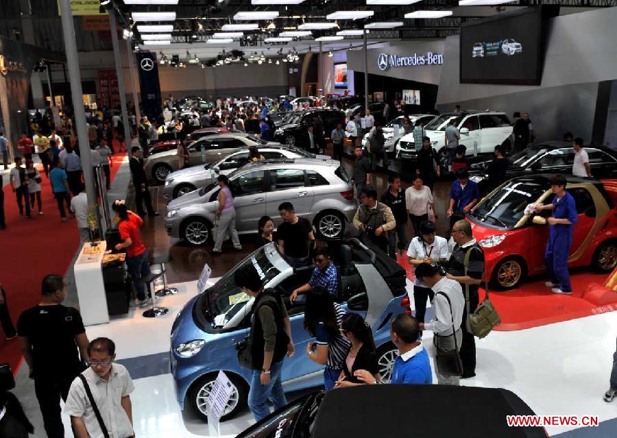 Visitors tour the 11th Qingdao International Auto Show at Qingdao International Convention Center in Qingdao, east China's Shandong Province, May 16, 2012. Over 50 new cars will be introduced during the six-day auto show that opened here on Wednesday. (Xinhua/Li Ziheng)