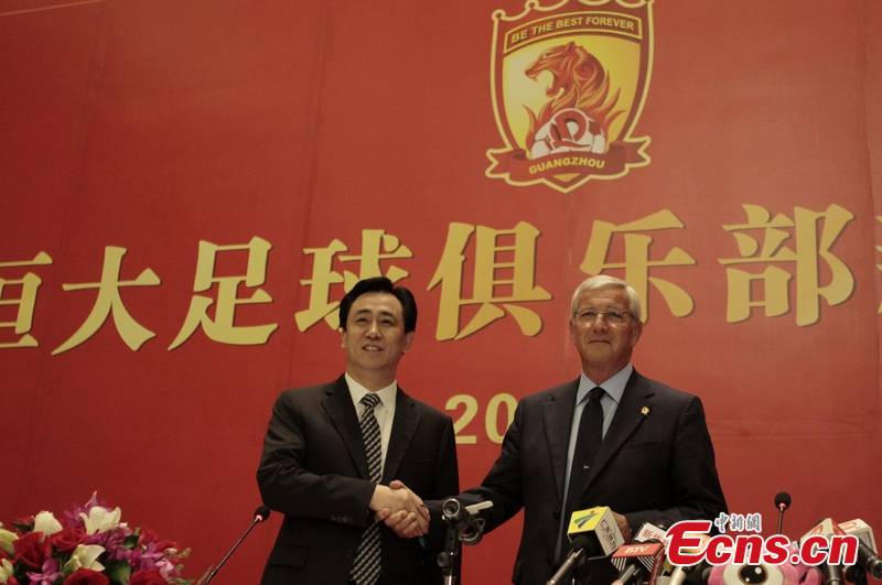 Italian coach Marcello Lippi joins the Chinese soccer club Guangzhou Evergrande as head coach with an annual salary of 10 million Euros, May 17, 2012. [Osports Photo]
